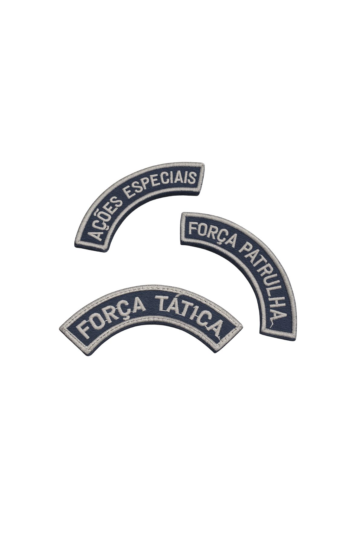 Este bordado em formato de meia lua com velcro é perfeito para quem busca personalização e identificação em uniformes e equipamentos táticos. Disponível em três modelos distintos, cada um medindo 10 x 2,5 cm e apresentando fundo preto com letras cinzas, os bordados são ideais para integrar equipes e destacar unidades especiais como Ações Especiais, Força Patrulha e Força Tática.