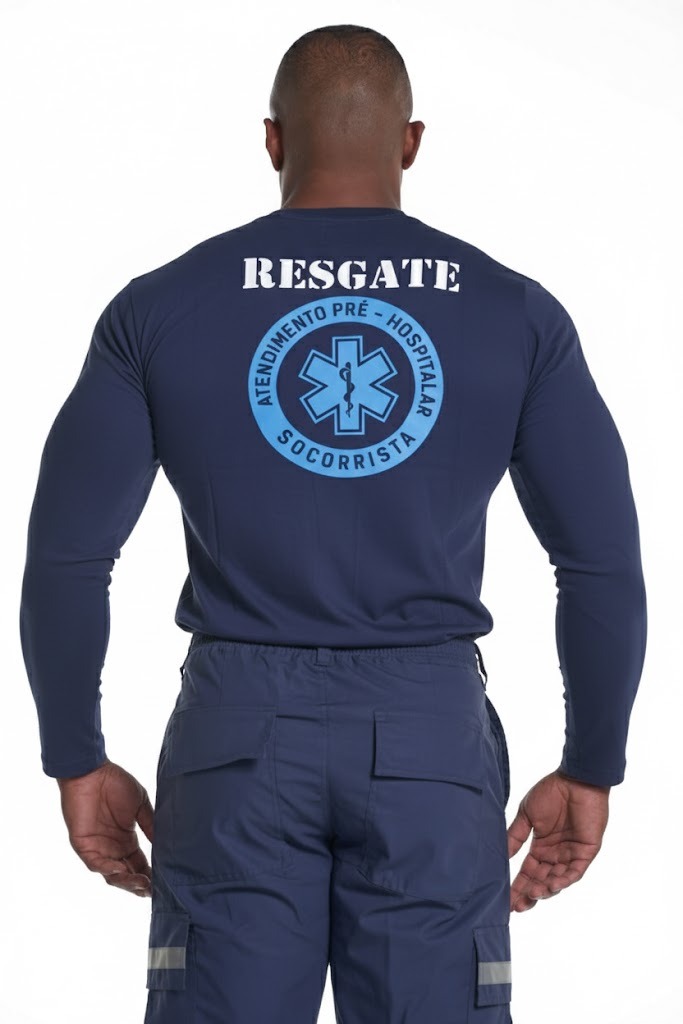 Estampa diferenciada: A camiseta conta com uma estampa exclusiva que exibe detalhes relacionados ao trabalho de resgate, com a inscrição “Resgate Socorrista” e símbolos que refletem a profissão.
