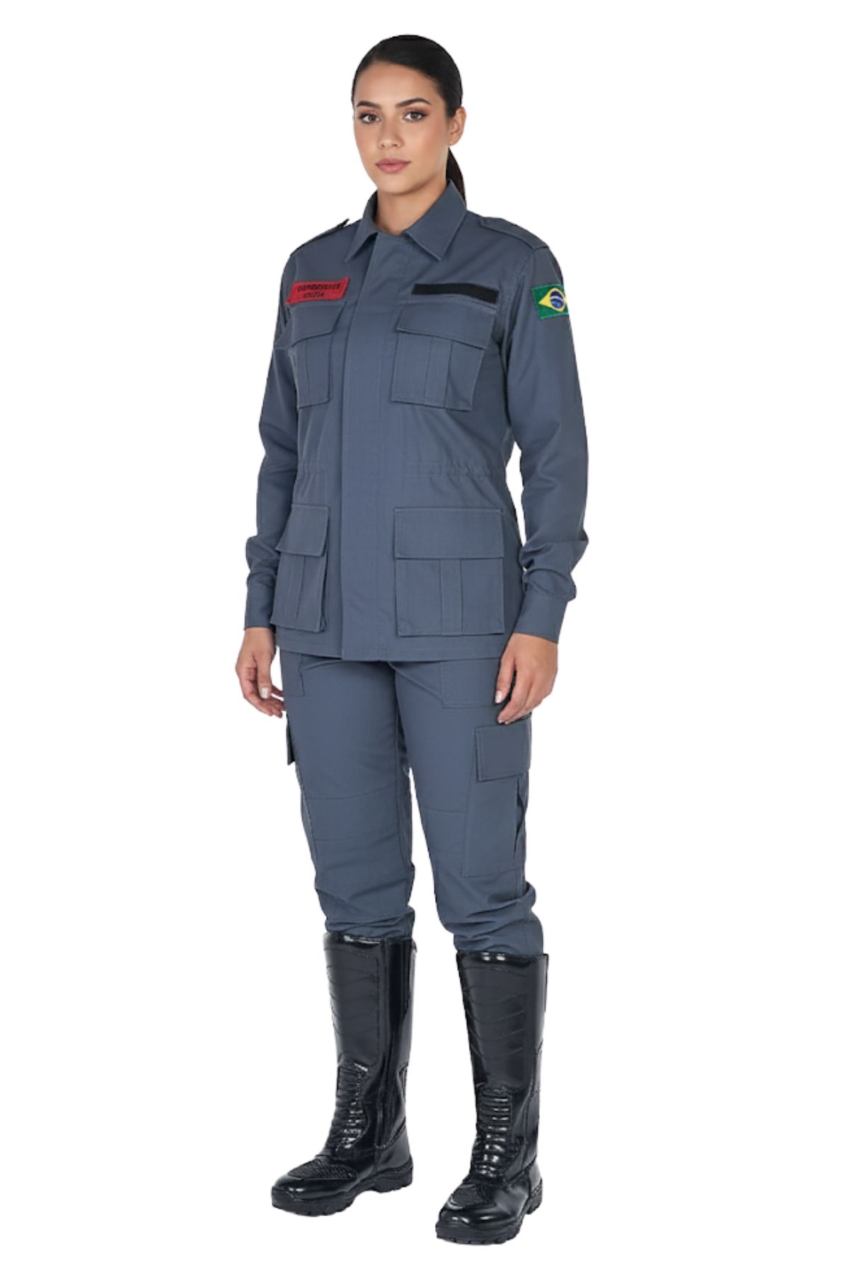 A descrição destaca a versatilidade do uniforme, sendo adequado tanto para atividades externas, como resgate em manifestações ou shows, quanto para serviços internos em locais como shoppings, empresas e hospitais.