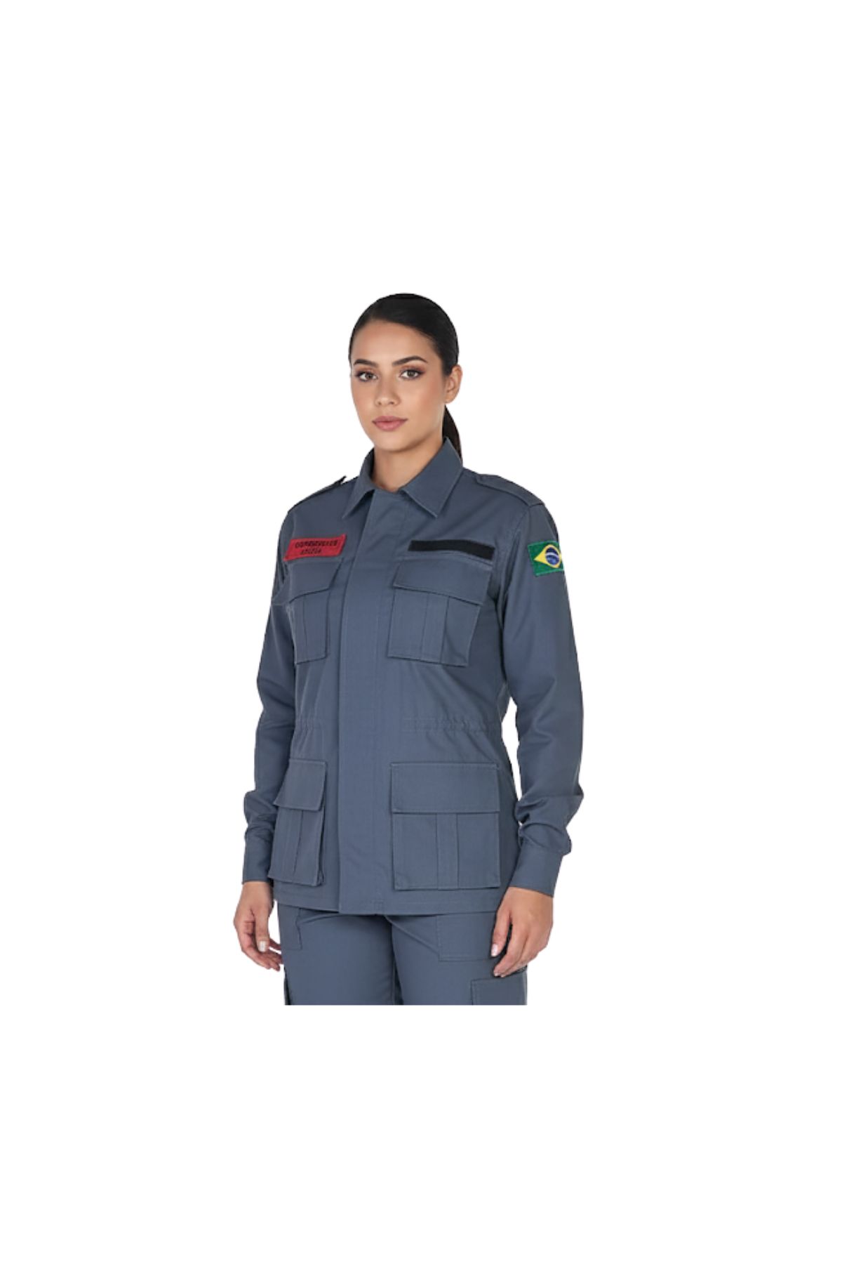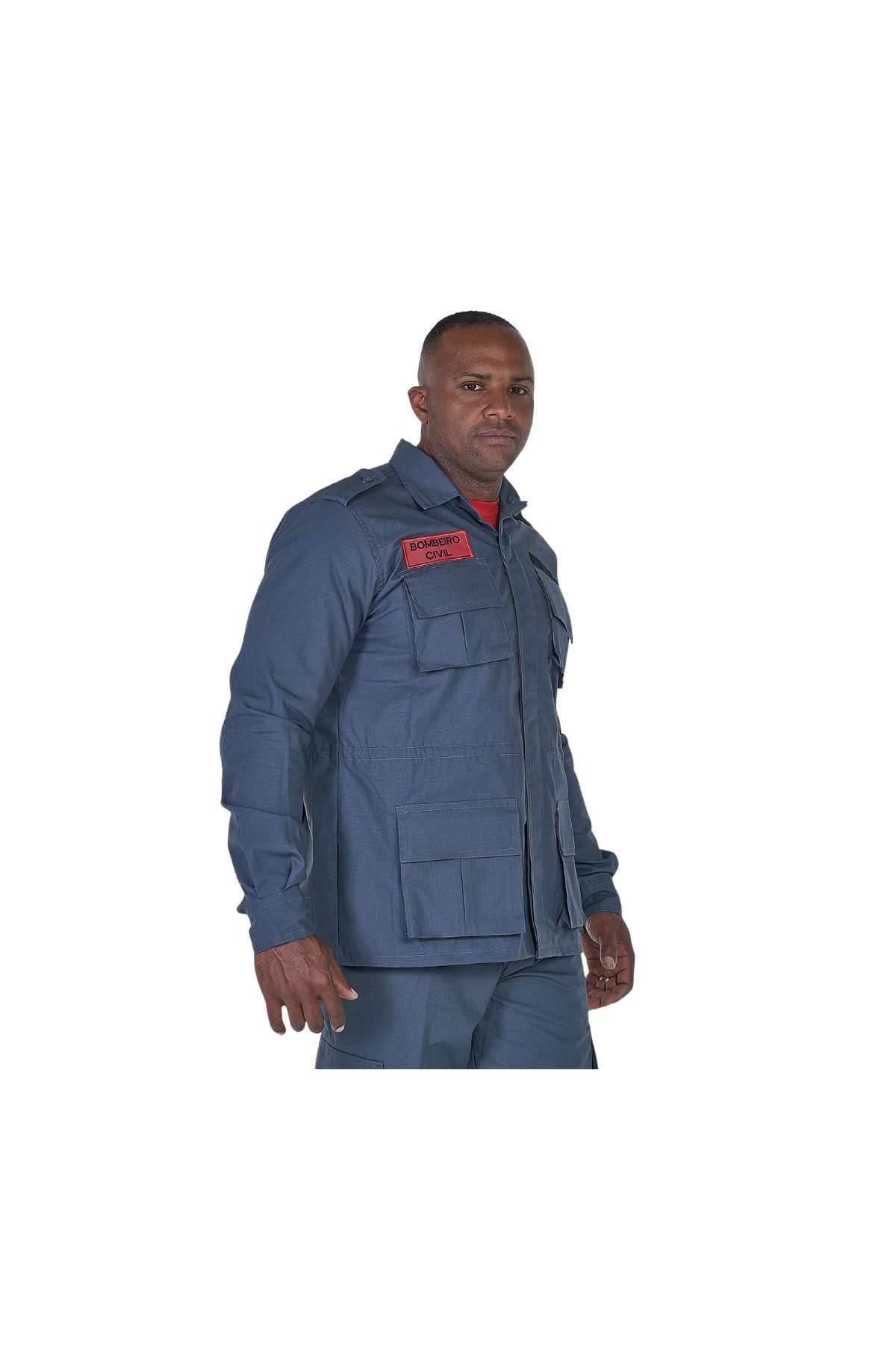 Bordado Bombeiro Civil na frente e nas costas: Proporciona identificação clara da função do usuário.