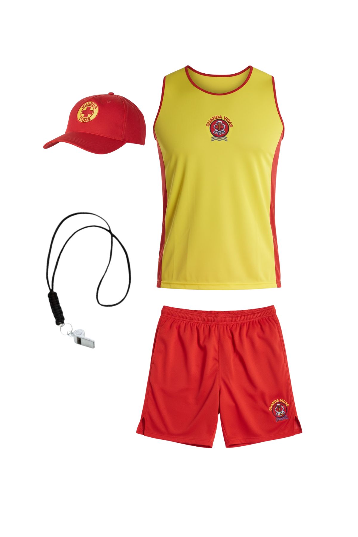 Kit Guarda-Vidas Completo: Regata, Short, Boné, Apito e Cordão