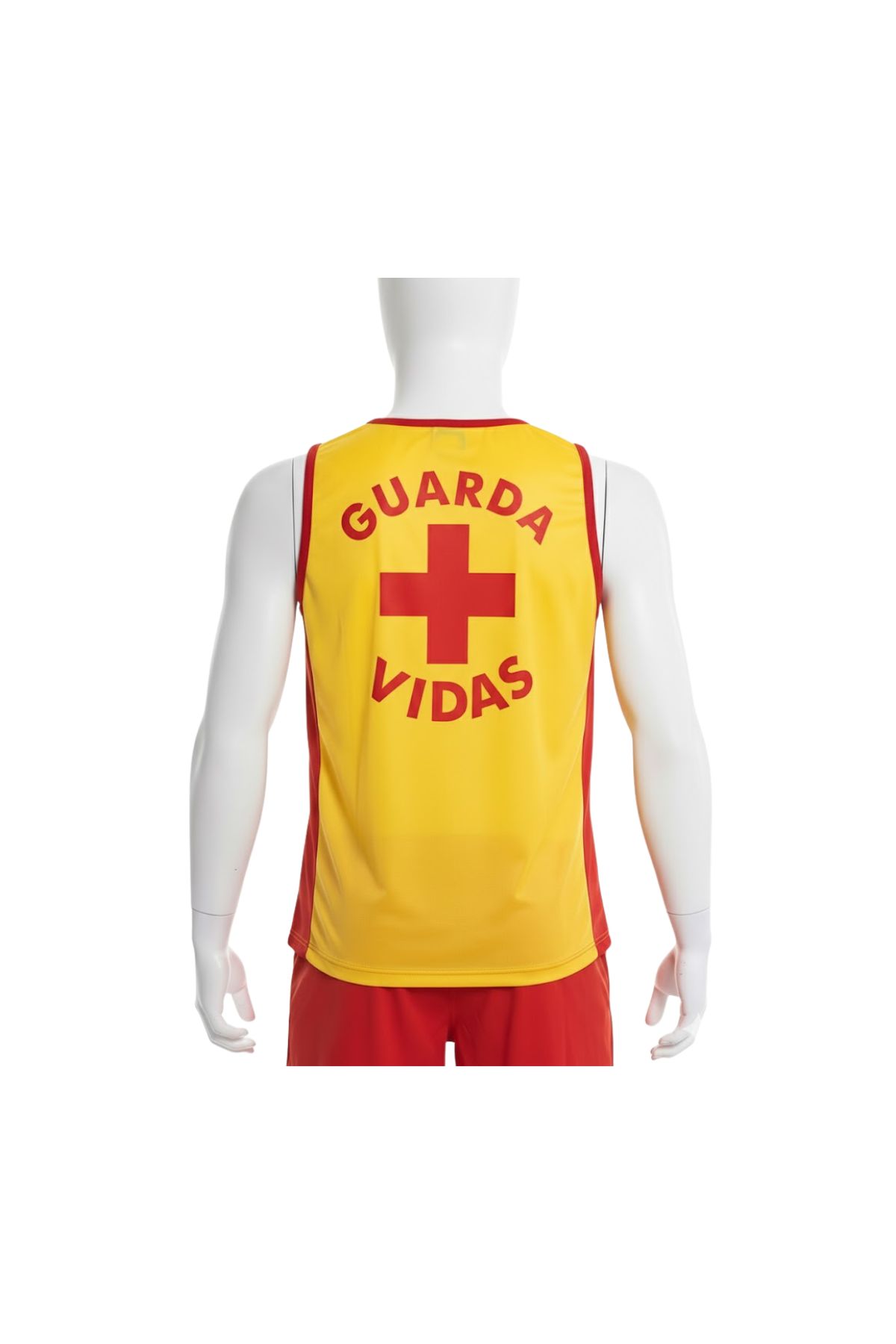 Com proteção UV, a regata bloqueia os raios solares nocivos, garantindo mais segurança durante longas jornadas ao ar livre. Seu design clássico combina as cores amarelo e vermelho, com acabamento reforçado nas bordas e estampa “Guarda Vidas” em destaque no peito e nas costas, garantindo alta visibilidade e identificação rápida.