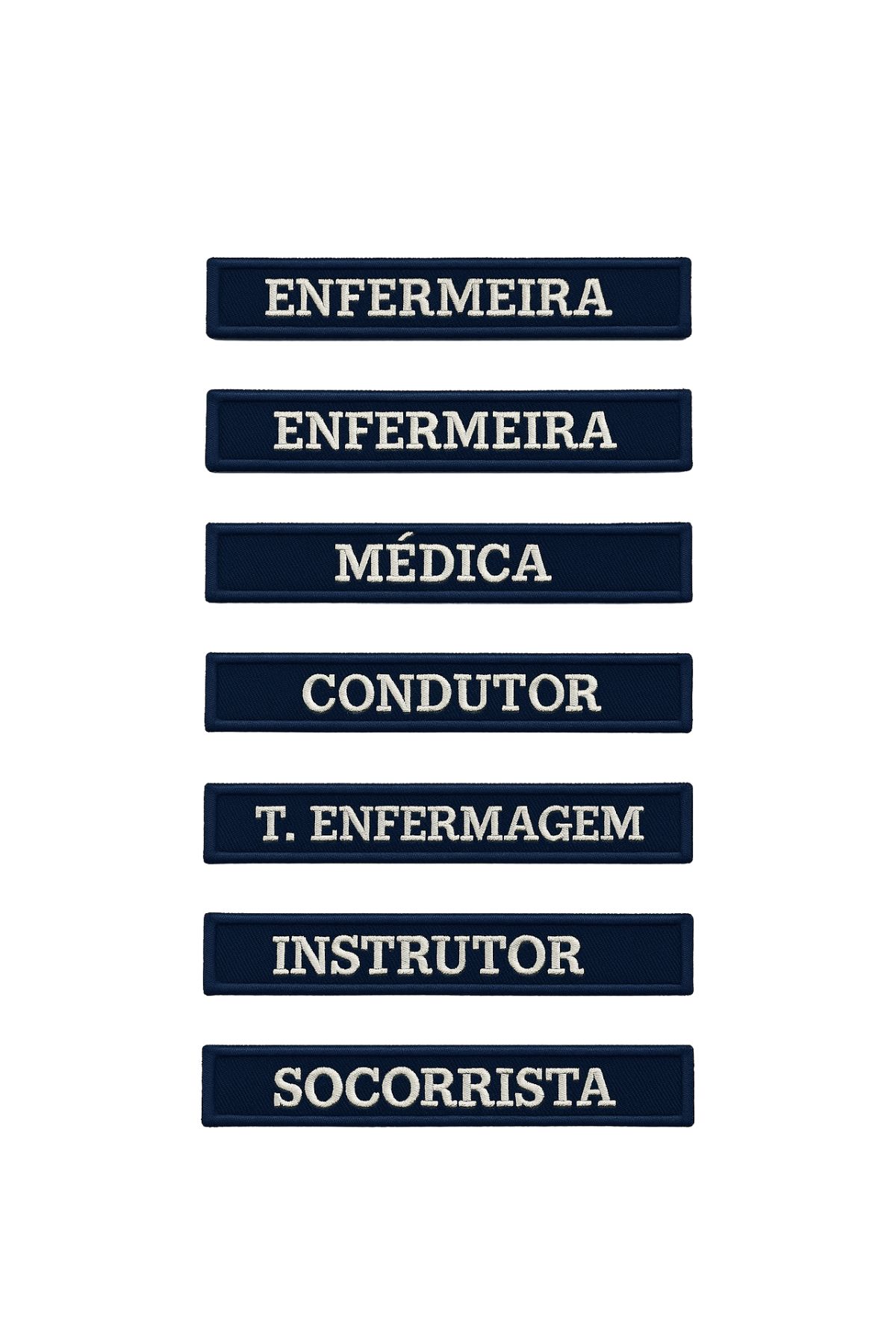 Bordados Disponíveis: Escolha entre uma variedade de bordados, incluindo Condutor, Enfermeira, Enfermeiro, Instrutor, Médica, Médico, Socorrista e Téc. Enfermagem. Personalize sua tarjeta de acordo com sua função na área da saúde.